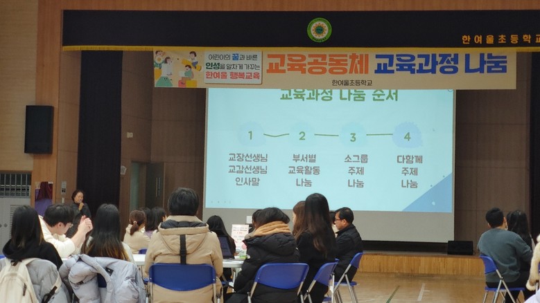 [시흥시 세계타임즈=송민수 기자] 한여울초등학교는 2023학년도 학교 교육과정 운영에 대한 반성 및 미래 교육으로의 발전 방향을 모색하기 위해, 12월 13일(수) 14:00 학교 체육관에서 학생, 학부모, 교사가 함께 교육과정 나눔의 시간을 가졌다.