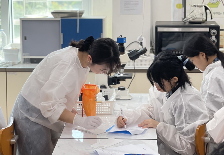 보건·환경 과학체험교실은 연구·분석 과정을 학생 눈높이에 맞춰 재구성한 실험 중심 프로그램이다. 물벼룩을 이용한 생태독성, 소음의 원리, 염소소독·정수기 만들기, 모기·진드기 현미경 관찰, 식품첨가물 이해 등 다양한 실험으로 학생들의 과학적 사고력과 탐구 역량을 높이고 과학 직업 세계도 자연스럽게 접하도록 진행됐다.