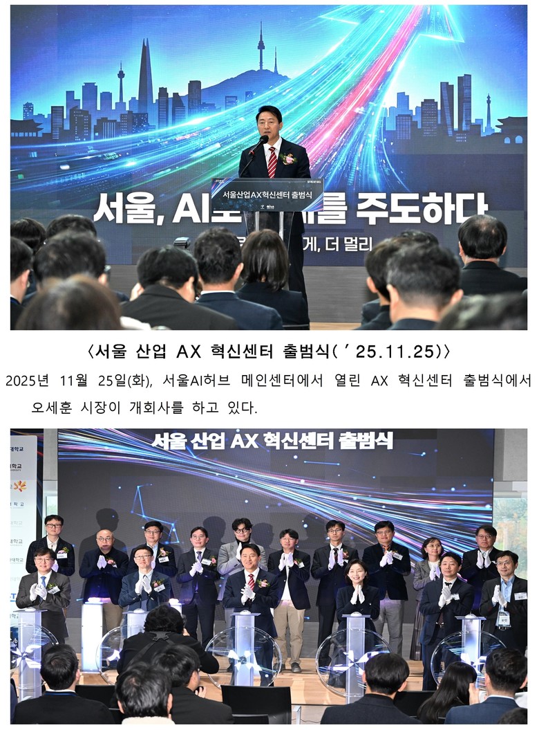 - ‘산업 AX 혁신센터’ 출범…실증–확산까지 서울형 실행체계 본격 가동