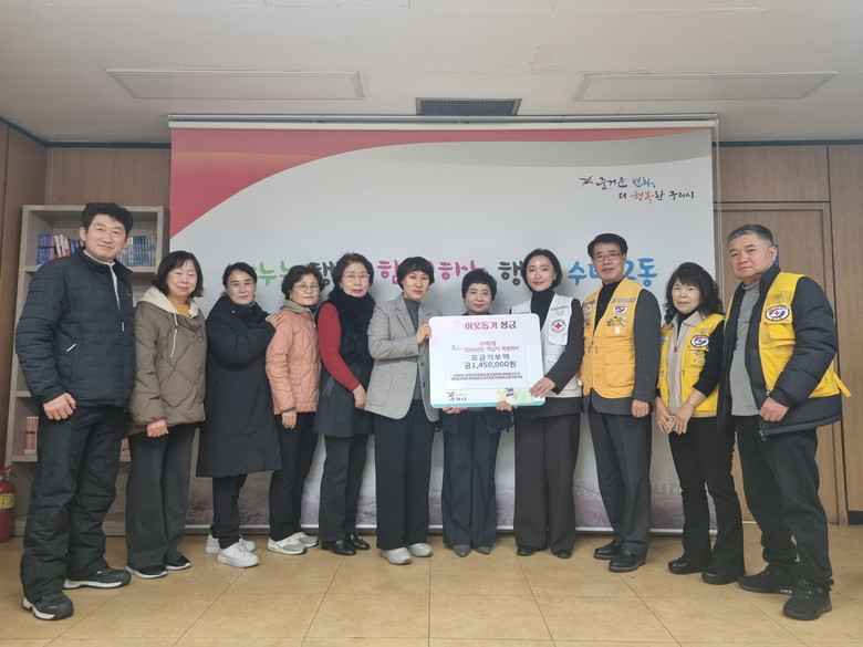 [구리시 세계타임즈=송민수 기자] 구리시(시장 백경현) 수택2동 행정복지센터(동장 박정희)는 지난 1월 16일 수택2동 7개 기간단체가 모금한 적십자 특별회비 145만 원을 대한적십자사에 전달하는 전달식을 개최했다고 밝혔다.