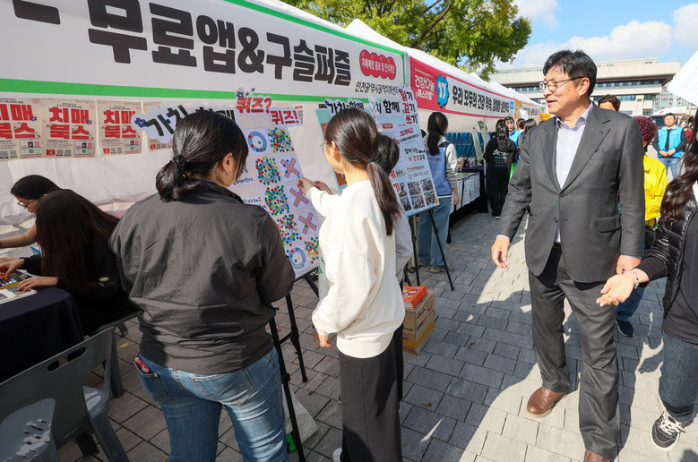건강나눔마당에서는 학교, 학부모, 지역 건강기관 등 21개 기관이 참여해 감염병 예방, 응급처치, 금연, 스트레스 관리, 마약류 오·남용 예방 등 다양한 체험 부스를 운영했다.
