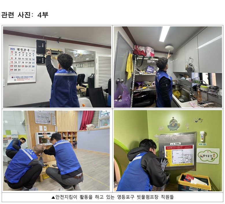 ’안전지킴이‘는 전기·기계 설비에 전문성을 갖춘 직원들이 직접 가정을 방문해 생활 안전을 점검하는 활동으로, 매년 지역사회에 큰 도움을 주고 있다. 올해는 관내 8개 빗물펌프장 직원 20명이 참여해 4개 조로 나누어 활동하며, 기간은 내년 2월 말까지다.