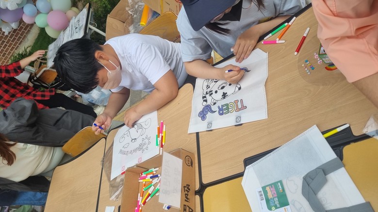 특히 이번 ‘알뜰장터’가 더욱 특별했던 이유는 학부모들과 교직원들이 함께 행사에 참여하여 모든 교육공동체가 함께하는 행사가 되었다는 점이다. 학부모회에서는‘포토존 및 소라 피리, 부채 꾸미기 ’ 부스를 운영하여, 학생들이 소라 피리나 부채를 꾸미는 체험을 진행하였으며, 학생들이 활동한 내용을 사진을 찍어 추억을 남길 수 있었다. 또한 ‘시흥초 어린이도서관’ 체험 코너에서는 학생들이 활동에 흥미를 느끼고 즐겁게 참여하며 책에 관심을 가질 수 있도록 과월호 잡지 나눔과 책을 넣어 다닐 수 있는 부직포 가방 만들기 체험을 진행하였다.