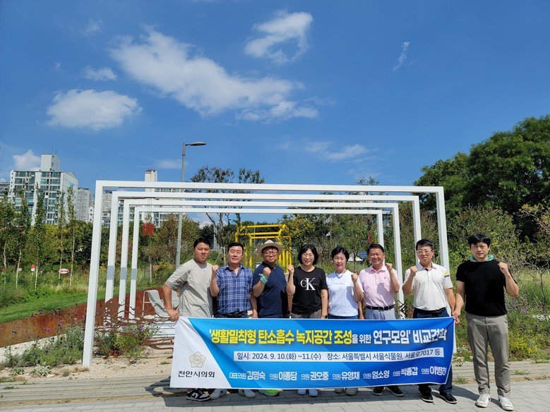 [천안시 세계타임즈=백택기 기자] 천안시의회 「생활밀착형 탄소흡수 녹지공간 조성」의원 연구모임(김명숙(대표의원), 이종담, 권오중, 유영채, 엄소영, 박종갑, 이병하)에서는 9월 10일(화)~9월 11일(수) 1박 2일간의 일정으로 생활밀착형 녹지공간 조성 우수사례 비교견학을 위해 서울특별시를 방문했다.