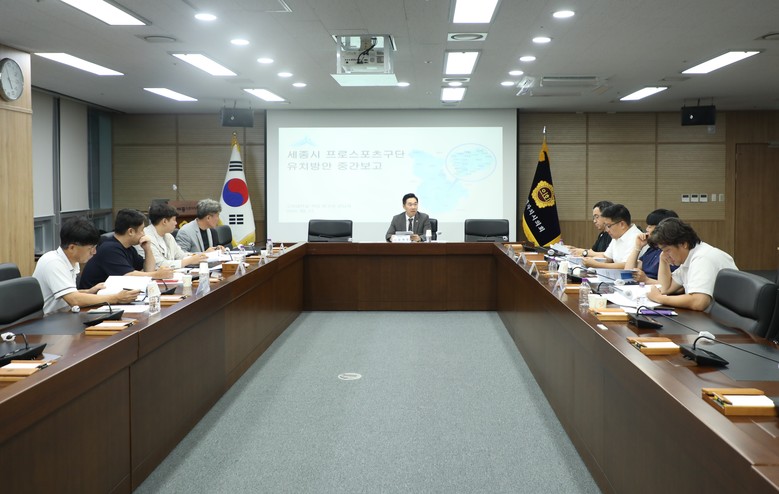 [세종 세계타임즈=이채봉 기자] 세종특별자치시의회(의장 임채성)는 11일 오후 4시 의회청사 의정실에서 ‘세종 스포노믹스(스포츠산업을 통한 경제활성화) 연구모임(대표의원 김재형)’ 제5차 간담회를 개최하고 ‘프로스포츠 구단 유치방안 검토에 관한 연구용역’ 중간보고회를 가졌다.