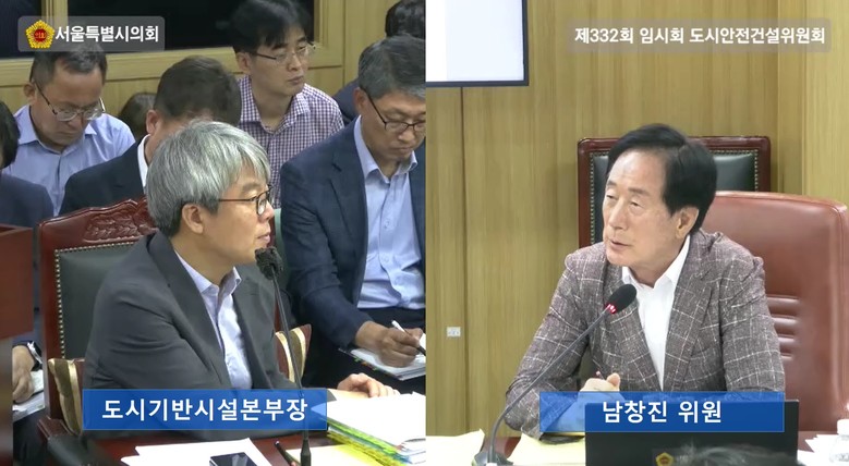 [서울 세계타임즈=이장성 기자] 서울특별시의회 도시안전건설위원회에서 의정 활동 중인 남창진 의원(국민의힘, 송파2)은 4일 제332회 임시회 서울시 도시기반시설본부 업무보고에서 공사현장 안내간판 관리 부실을 지적하고 호우 시 공사장 감전사고 예방을 위해 철저한 현장관리를 주문했다.