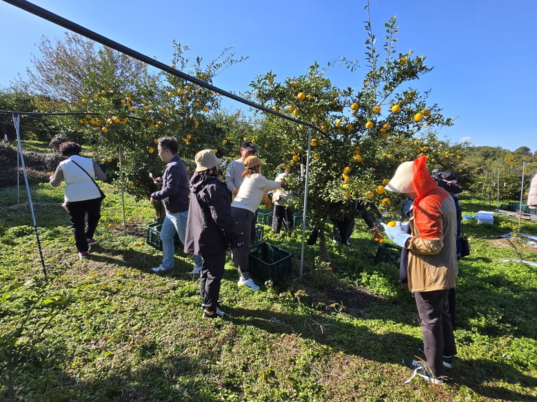 첫째 날 참가자들은 풍양면 유자 농가를 방문해 유자 수확과 선별 등 일손돕기 봉사활동을 통해 지역 특산물 생산과정을 직접 체험하고, 농가의 인력 부족 해소에도 기여했다.