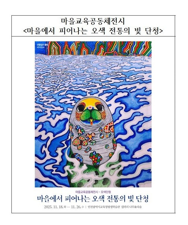 전시에서는 전통 미술 문화인 ‘단청’을 현대적 감각으로 재해석한 다양한 작품이 선보이며, 책갈피·단청스탬프 만들기 등 체험 프로그램도 마련된다.