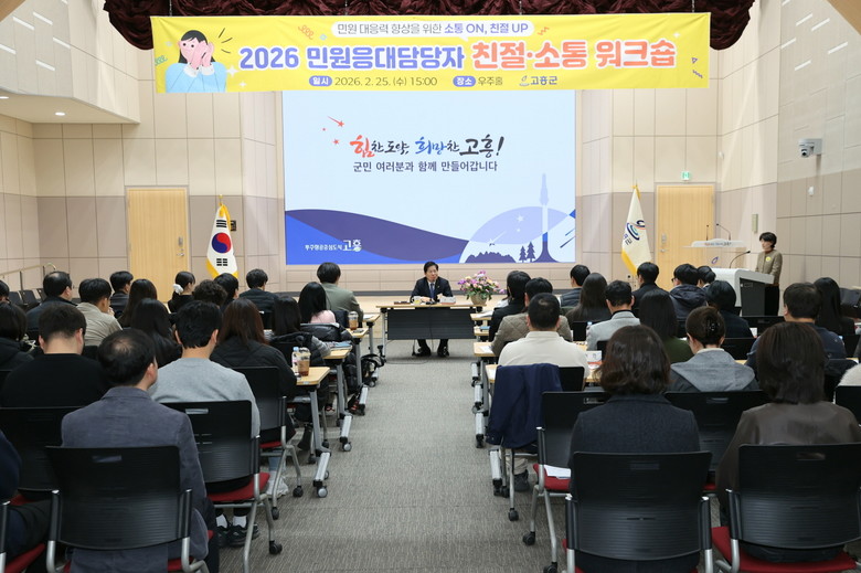 [고흥군 세계타임즈=우덕현 기자] 고흥군(군수 공영민)은 지난 25일 군청 및 읍·면사무소 민원 담당 공무원을 대상으로 민원 서비스 품질 향상과 군민 만족도 제고를 위한 ‘친절·소통 워크숍’을 개최했다고 밝혔다.