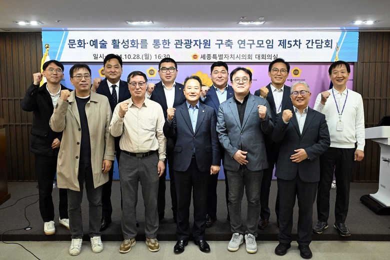 [세종 세계타임즈=이채봉 기자] 세종특별자치시의회는 28일 오후 16시 의회청사 대회의실에서 ‘문화·예술 활성화를 통한 관광자원 구축 연구모임(대표의원 상병헌)’ 제5차 간담회를 개최했다.
