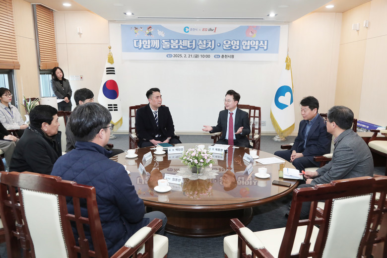 춘천시는 2월 21일 오전 10시 춘천시청 접견실에서 육동한 춘천시장과 우두이지더원 시그니처 아파트 입주자대표회의와 관계자 등이 참석한 가운데 다함께 돌봄센터 설치·운영에 관한 업무협약을 체결했다.