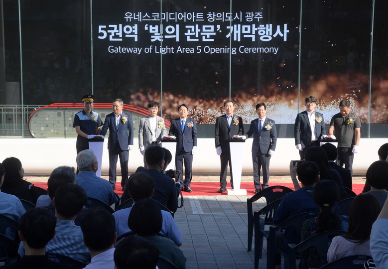 광주광역시(시장 강기정)는 30일 광주송정역 광장에서 강기정 시장과 박병규 광산구청장, 한국철도공사 등 관계기관, 콘텐츠 제작에 참여한 ㈜이지위드, 미디어아트 작가 등이 참석한 가운데 개막식을 가졌다.