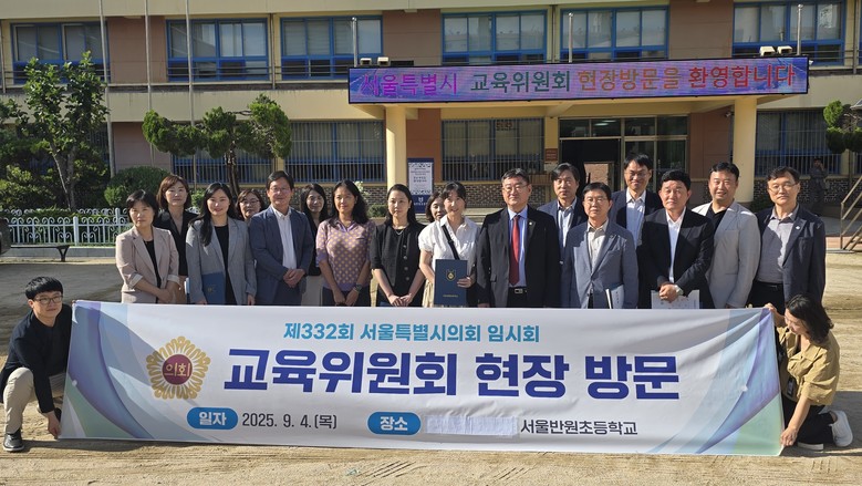 [서울 세계타임즈=이장성 기자] 서울특별시의회 교육위원회 박상혁 위원장을 비롯한 교육위원들은 제332회 임시회 기간 중인 9월 4일(목), 서초구 서울반원초등학교(교장 박영주)를 방문해 과밀학교 운영 실태와 모듈러 교사 활용 현황을 점검하고 관계자들을 격려했다.