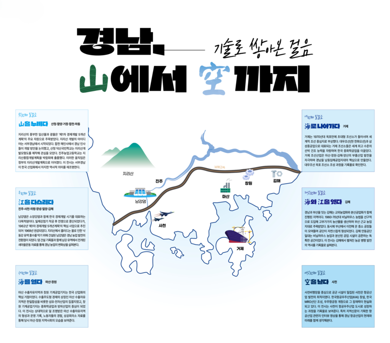 이번 전시는 경남이 한국 경제 발전에 기여해 온 여정을 산·강·바다·하늘로 잇는 산업발전 서사로 새롭게 해석하고, 산업화 현장에 남겨진 중요한 역사기록물을 선보인다.
