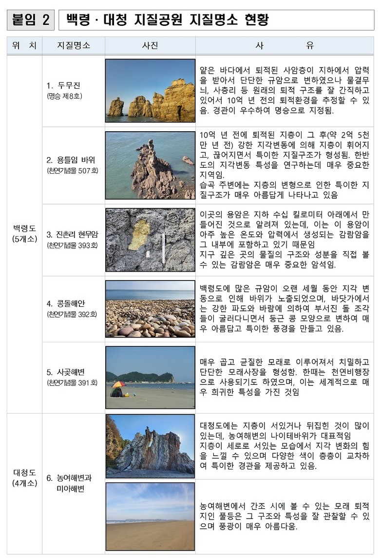 - 인천 I 바다패스 연계, 체류형 섬 관광 콘텐츠 강화 및 지역경제 활성화 기대 - [인천 세계타임즈=심하린 기자] 인천광역시(시장 유정복)는 백령·대청 국가지질공원의 2026년 지질공원해설사 활동을 3월부터 본격 운영한다고 밝혔다.