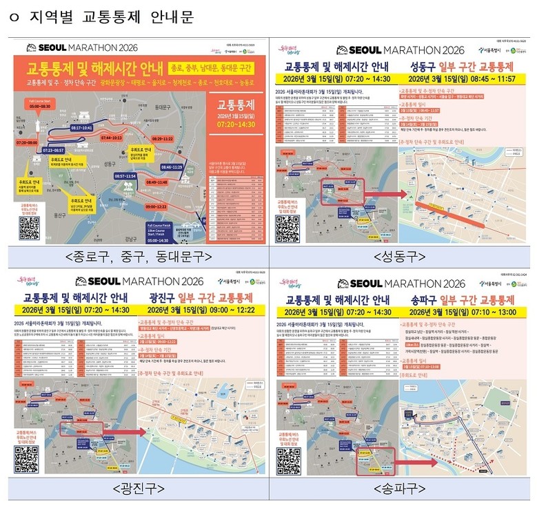QR코드 이용이 어려운 시민은 대회 사무국(02-312-1998)과 120 다산콜센터(국번 없이 120)를 통해 안내받을 수 있다. 서울마라톤 관련 정보와 구간별 교통 통제 등 자세한 사항은 공식 누리집(https://www.seoul-marathon.com)에서 확인할 수 있다.