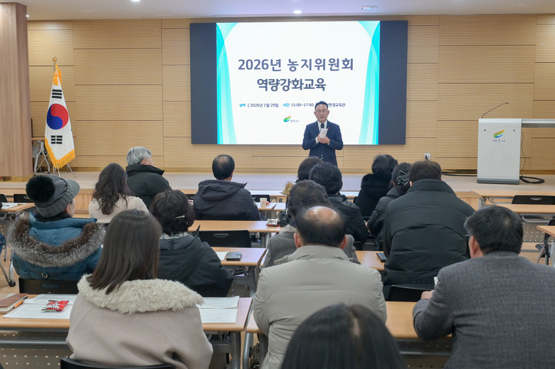 [여주시 세계타임즈=송민수 기자] 여주시(시장 이충우)는 지난 1월 29일(목) 농업기술센터 친환경교육관에서 「2026년 농지위원회 역량강화 교육」을 실시했다.