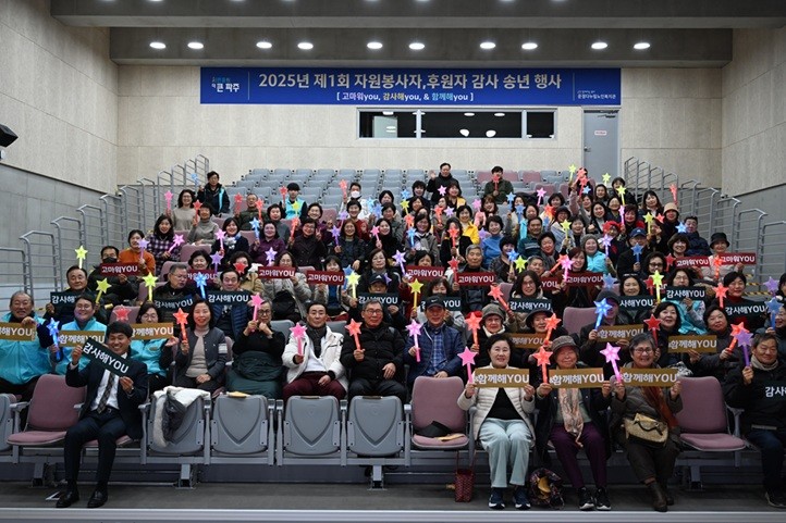 [파주시 세계타임즈=송민수 기자] 파주시는 지난 11일, 운정다누림노인복지관에서 자원봉사자와 후원자에 대한 감사를 위한 송년 행사인 ‘고마워유(YOU), 감사해유(YOU) 앤드(&) 함께해유(YOU)’ 행사를 개최했다고 밝혔다.