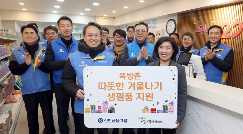 이날 신한금융 진옥동 회장 및 그룹사 CEO들은 쪽방촌 주민 생필품 나눔 매장인 ‘온기창고’에 방문해 1천8백만원 상당의 생필품을 전달했다.