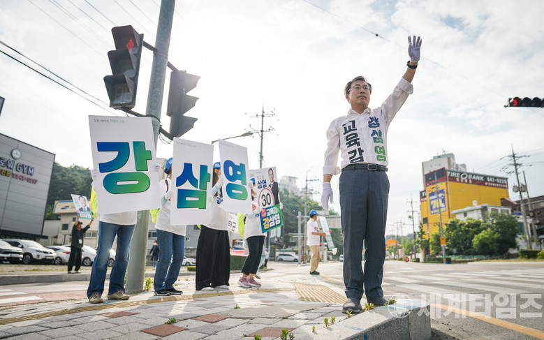 강 후보도 선거 유세를 할 때마다 “학교 앞 안전속도 삼영(30)처럼 아이들을 지키는 교육감이 되겠다”고 마무리한다.