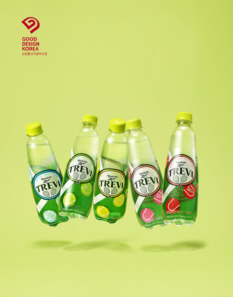 ‘트레비’는 스포츠 브랜드 ‘리복’과 협업한 한정판 패키지로 우수디자인에 선정됐다. 트레비 패키지의 상징인 초록색을 바탕으로 테니스 트랙과 공 디자인을 통해 현장감을 담았다. 플레인, 레몬, 라임, 복숭아, 자몽 향을 각각 다른 테니스 공의 색으로 표현하고 트레비만의 건강한 에너지를 다채롭게 표현한 점이 특징이다.