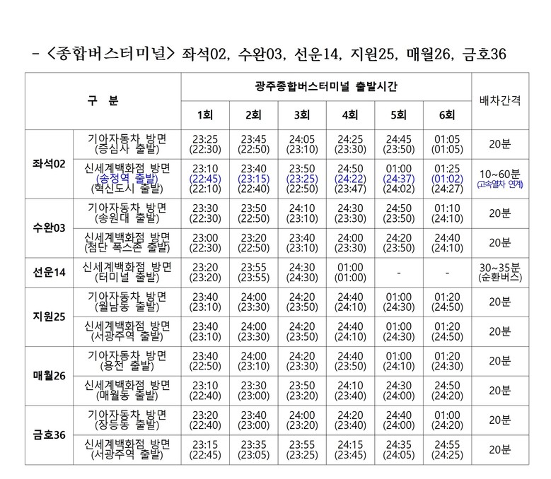 - 시내버스는 송정역·종합버스터미널 경유 새벽 1시께까지 운행