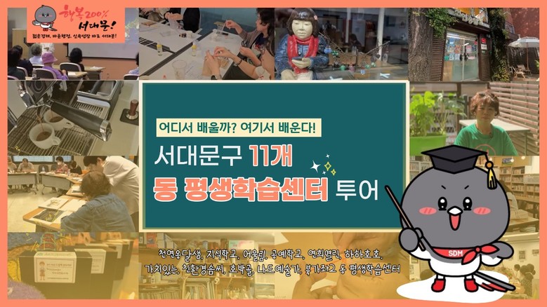 해당 영상은 서대문구청 공식 유튜브 채널에서 ‘서대문구 11개 동 평생학습센터 투어’를 검색하면 시청할 수 있다.