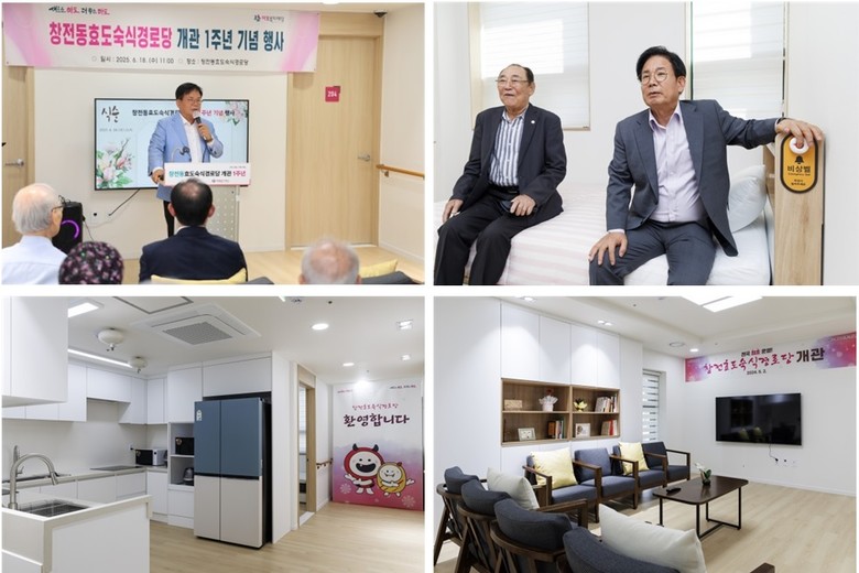 | ▲ (시계방향으로) ① 효도숙식경로당 개관 1주년 기념식에서 기념사를 전하는 박강수 마포구청장 |