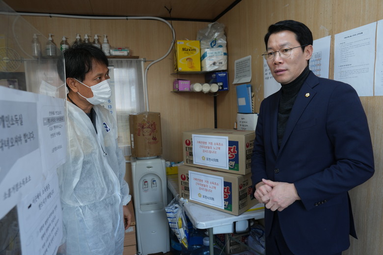 임종훈 의장은 이날 소흘읍과 신북면에 있는 거점 소독초소 5개소를 차례로 방문했다. 현장에서 방역 추진 상황을 점검한 임종훈 의장은 준비한 위문품(라면 10박스)을 전달하며, 매서운 한파 속에서 고생하는 근무자들의 애로사항을 청취하고 이들의 노고를 위로했다.