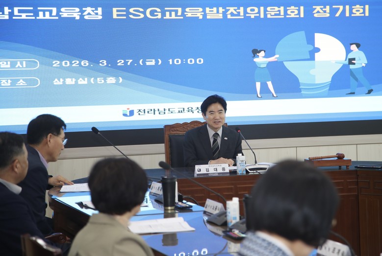 [전남 세계타임즈=우덕현 기자] 전라남도교육청이 3월 27일 전라남도교육청 상황실에서 ‘ESG 교육발전위원회 정기회’를 열어, ESG 기반 교육행정 추진 성과를 공유하고 정책 고도화 방향을 모색했다.