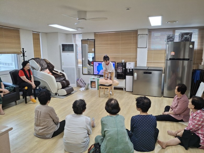 | ▲ (사진)지난해 8월, 동작구 사당2동 남성경로당에서 응급구조사가 심폐소생술 안전교육을 하고 있다. |