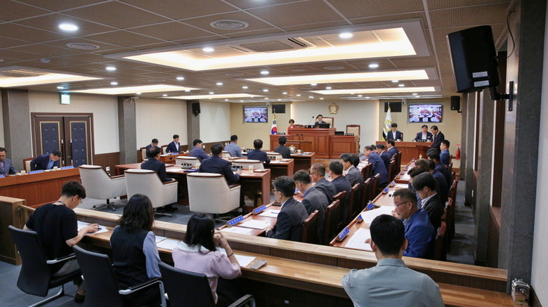 장정복의장은 개회사를 통해 “이상기후로 인한 폭우와 태풍, 폭염 등 자연재해 피해가 발생하지 않도록 각종 수리시설과 도로, 교량, 산사태 위험지역 등 관내 취약지역에 대해 사전에 점검하고, 풍수해로 인한 인명과 재산 피해를 막기 위한 선제적인 대책 마련에 만전을 기해 주시기 바란다.”고 강조했다.