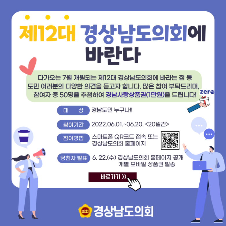 - 경상남도의회 누리집을 통해 참여 가능, 추첨하여 상품권도 지급