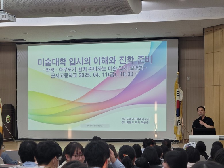 강사로 초빙된 경기예술고등학교 최용준 교사(경기도교육청 진로진학팀 미술분과 리더)는 입시 구조와 전형을 전문적으로 설명하고 학생들이 주체적으로 진학 전략을 세울 수 있도록 현실적인 조언을 전했다. 최용준 교사는 군서고등학교 교육공동체의 높은 관심과 열정 속에서 강사로서의 보람을 느꼈다고 밝혔다.