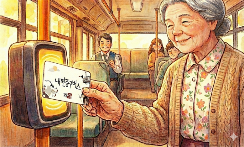 | ▲ 성형 AI로 제작한 내편중구버스 전용 카드 사용 모습 |
