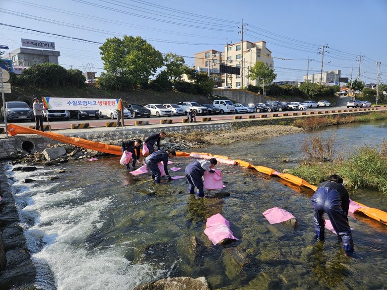 이번 훈련은 수질오염사고 발생 시 신속한 방제 및 대응능력 향상을 위해 실시된 것으로, 구청 공무원 등이 참여했다.