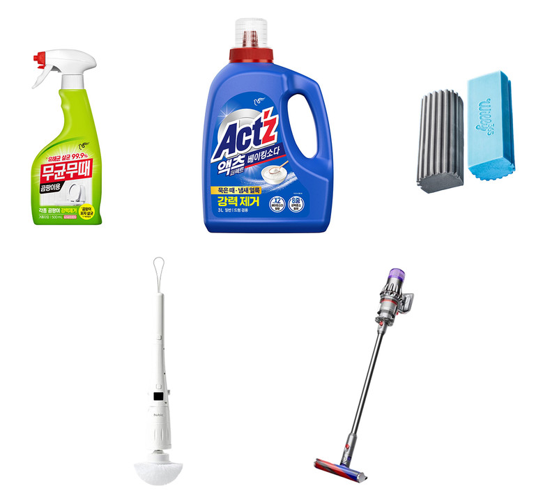 오랫동안 방치된 집을 청소하기에 앞서 환기하는 게 중요하다. 장기간 환기를 하지 않으면 미세먼지, 이산화탄소 등 오염물질이 잘 쌓여 실내 공기가 외부보다 오염도가 더 높다. 장식장, 책장, 냉장고 위 등 손이 잘 닿지 않는 곳은 걸레로 닦기가 쉽지 않다. 걸레로는 좁은 틈이나 모서리를 청소하기 어렵기 때문에 스펀지를 사용하면 공간에 맞춰 잘라 사용할 수 있어 구석까지 깔끔하게 청소가 가능하다. 윌리365 ‘열일스펀지’는 12배까지의 물을 흡수할 수 있어 먼지와 물기까지 한 번에 제거할 수 있다. PVA스펀지를 사용해 탄력성과 내구성이 뛰어나다.