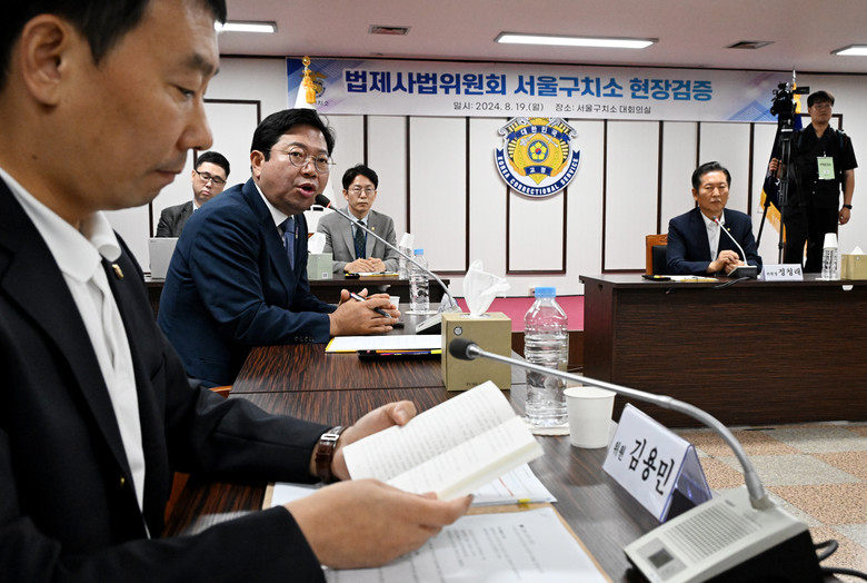[세계타임즈 = 심귀영 기자] 김승원 법사위 야당 간사가 19일 오전 경기도 의왕시 서울구치소에서 진행된 국회 법제사법위원회 서울구치소 현장검증에 참석해 의사진행 발언을 하고 있다. 2024.8.19 [국회사진기자단]