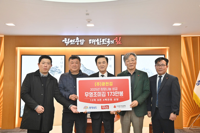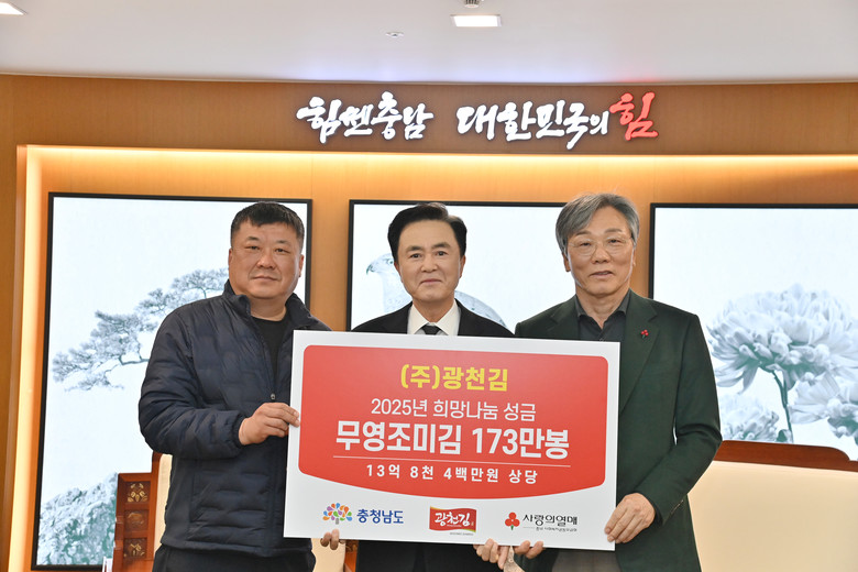 이날 3개 기업·단체가 기부한 성금 및 물품은 총 14억여원 상당으로, 13억 8493만원 상당의 광천김과 충남어린이집합회에서 1534만원, 문화관광해설사회가 540만원을 기부했다.