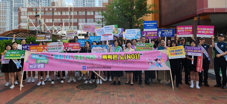 이번 캠페인은 학교폭력에 대한 경각심을 높이고 안전한 학교 문화를 확산시키기 위해 북부경찰, 북구, (사)패트롤맘 광주지부 등 지자체·유관기관과 협력해 추진됐다.