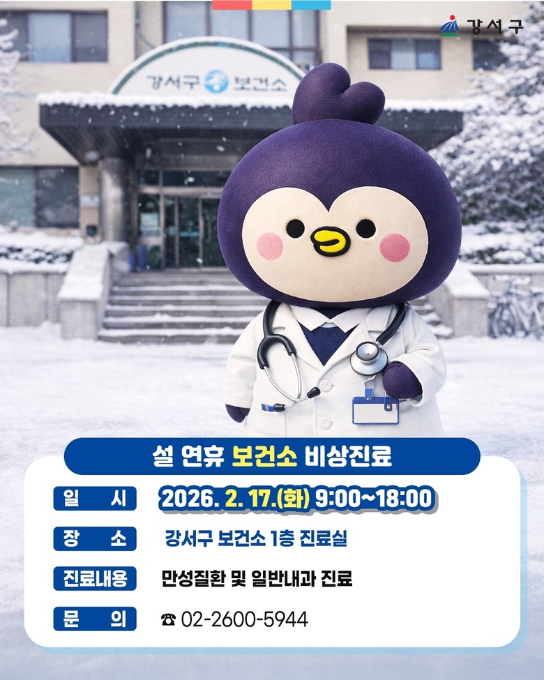 구 관계자는 “가족과 함께하는 설 연휴에 건강 걱정 없이 지낼 수 있도록 의료공백 없는 안전한 진료체계를 마련했다”며, “구민들이 편안하고 행복한 명절을 보낼 수 있도록 행정 역량을 집중하겠다”고 말했다.
