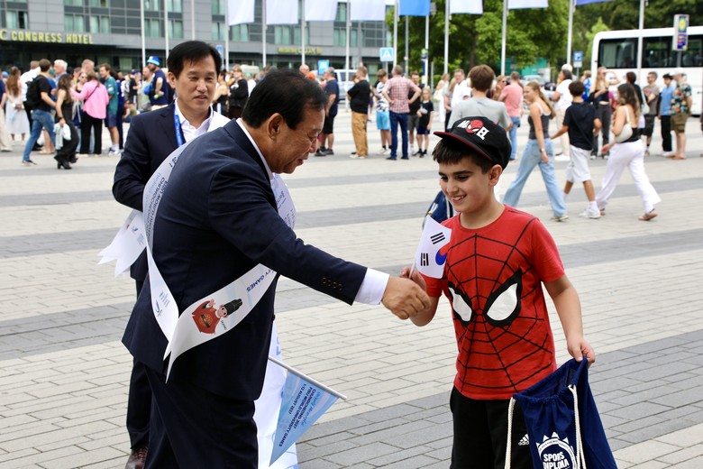 또 이곳에서 열리는 대한민국과 네덜란드의 유도 혼성단체전 동메달 결정전을 참관하며 우리나라 선수단을 응원한 뒤 관람객 등을 대상으로 2027 충청권 하계세계대학경기 개최를 홍보했다.