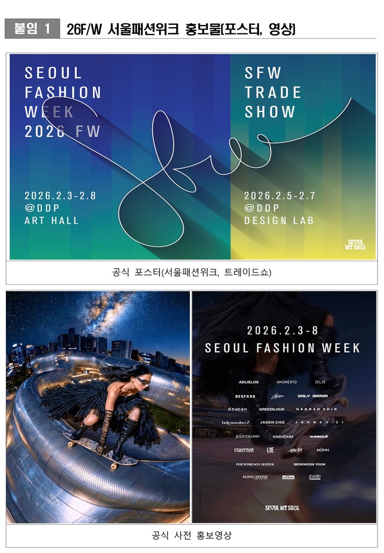 <2026 F/W 서울패션위크 2월 3일~8일 DDP 원 사이트로 개최>