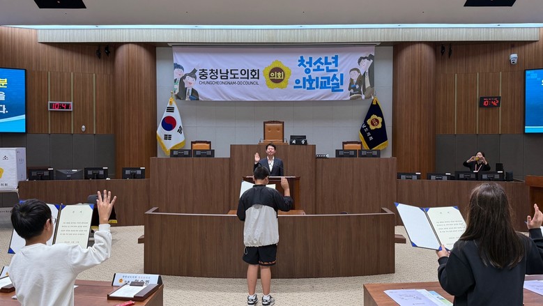 충남도의회 고효열 사무처장은 인사말을 통해 “오늘 의회교실은 청소년들이 풀뿌리 민주주의의 근간인 지방자치의 원리와 지방의회의 역할을 이해하고 배우는 계기가 되었을 것으로 기대한다”며 “미래를 향한 큰 꿈을 갖고 인성을 겸비한 지역사회의 주역이 되어 줄 것”을 학생들에게 당부했다.