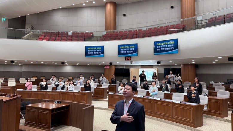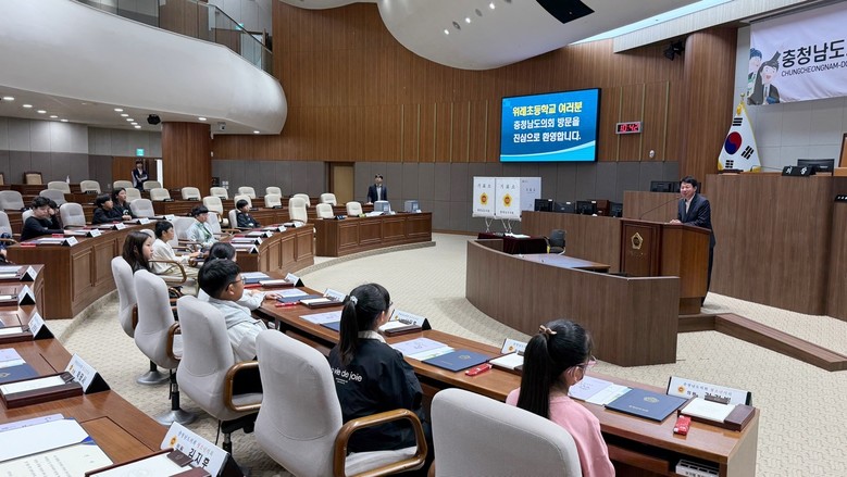 [천안시 세계타임즈=백택기 기자] 충남도의회(의장 홍성현)는 11일 천안 위례초등학교 학생 27명과 지도교사 3명이 참여한 가운데 ‘청소년 의회교실’을 열었다.