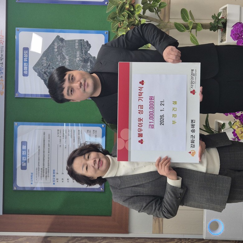 이에 이명자 송해면장은 “지역을 잊지 않고 따뜻한 나눔을 실천해 주신 부경건설에 깊이 감사드린다”며, “기탁해 주신 성금은 도움이 필요한 이웃들에게 소중히 전달하겠다”고 감사의 뜻을 표했다.