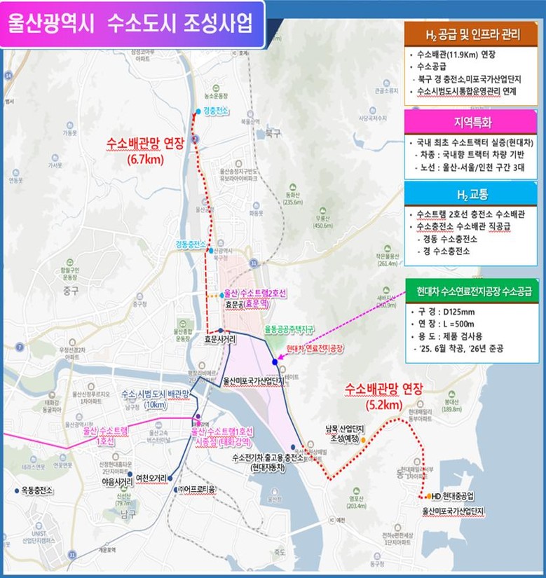 수소도시 조성사업은 국토교통부가 수소의 생산과 이송, 활용까지 이뤄지는 수소 생태계가 구축돼 수소를 활용한 도시혁신을 통해 시민들에게 건강하고 깨끗한 도시를 제공하는 것이 목표다. 지난 2024년 울산시, 경북 울진군, 충남 서산시 등 3곳이 수소도시 조성사업 3기로 선정된 바 있다.