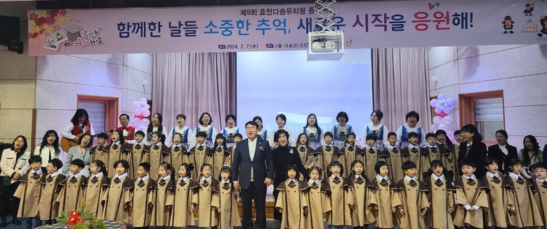 효천다솜유치원 채미숙 원장은 “엄숙하고 무거운 분위기의 졸업식이 아닌 구성원 모두가 함께 축제 같은 졸업식을 준비했다”며 “졸업하는 원아들의 희망찬 앞날을 응원한다”고 말했다.
