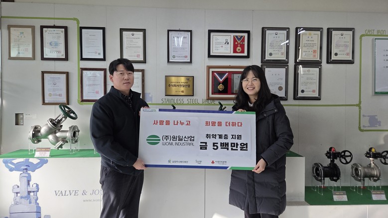 한편, ㈜원일산업은 남양주시 수동면에 위치한 밸브 전문 생산업체로, 2009년부터 동부희망케어센터와 연계한 꾸준한 후원을 통해 지역사회 복지 증진에 앞장서고 있다.