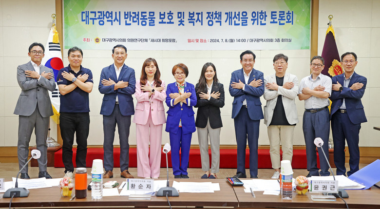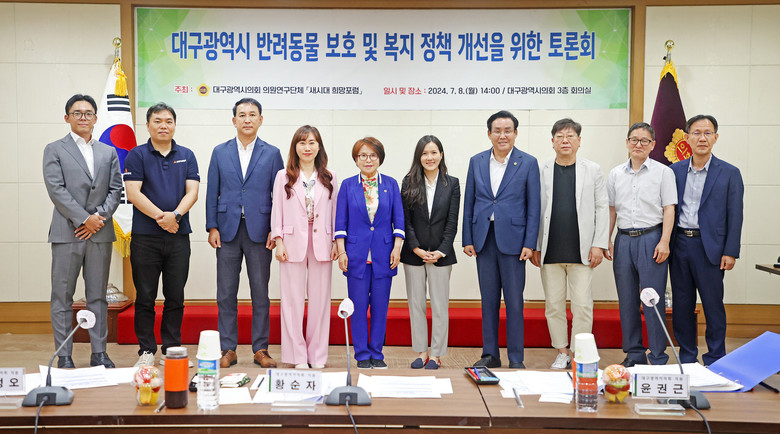 [대구 세계타임즈=한윤석 기자] 대구시의회 의원연구단체 ‘새시대 희망포럼’ (대표 황순자 의원)은 7월 8일(월) 오후 2시 시의회 3층 회의실에서 ‘대구광역시 반려동물 보호 및 복지 정책 개선을 위한 토론회’를 개최한다.